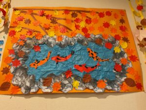 紅葉と池の鯉