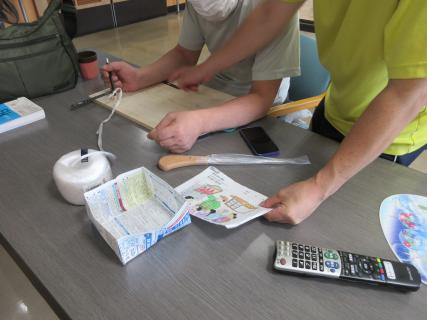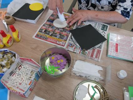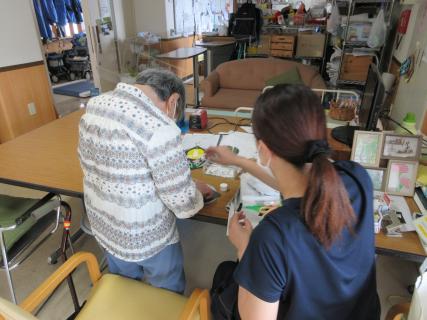 9月に入り、何かを作っているデイサービスの方々。