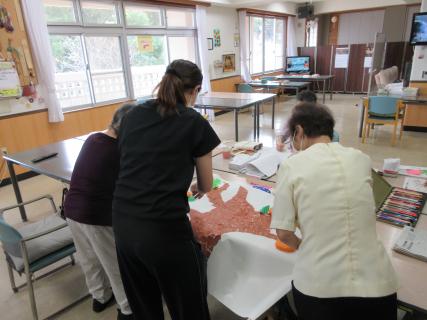 利用者の皆さんと「あっちにつけた方がいいよ。」