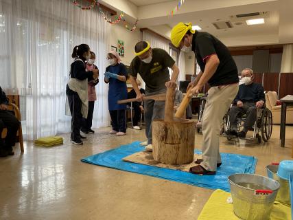 今年もデイサービスで餅つきを開催しました。(^○^)