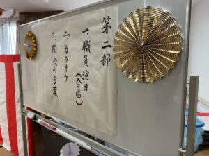 前半の祭典は施設長からのお祝いの言葉に始まり、長寿祝いの方への記念品贈呈。