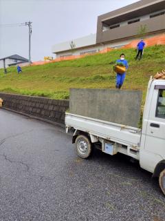 草刈り当日は、小雨が降りはじめ、天候があまりよくなかったのですが、作業は決行されました。(?_?)