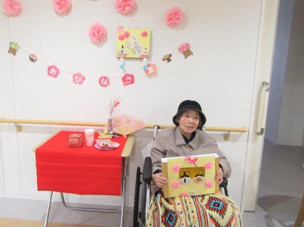 従来型特養では、壁が華やかに飾り付けられ、職員お手製セットをバックにしての記念撮影(^^)/とってもかわいく撮れ、