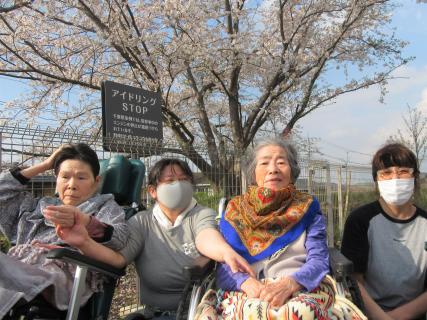 様にも是非とも春を感じてもらえるよう、外に出てお花見をしていただきました!(^^)!