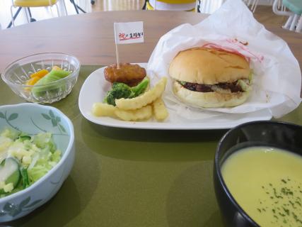 移転1周年を記念して昼食に、特別メニューとしてハンバーガーが提供されました。