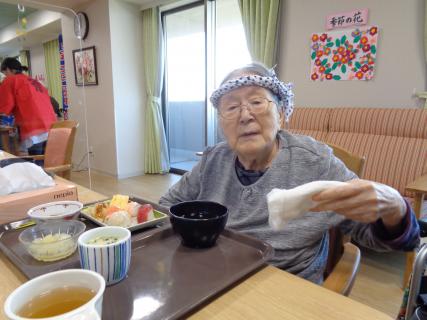 者様に日清医療食品さんによる手作りお寿司が振舞われました(^_-)-☆