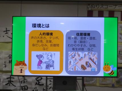 認知症の症状についての基礎的理解や、認知症の方への対応の基礎等について映像を通して学びました。