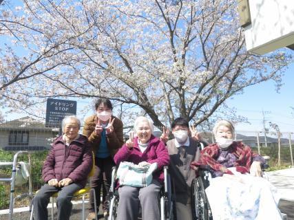 天気も良く暖かかったので、外に出て利用者の皆様と桜をパチリ!!(^_-)-☆