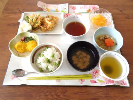 春真っ盛りということで、本日の昼食は「春御膳」を提供いたしました。
