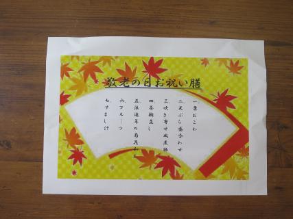 今年は9月16日(月)が敬老の日でした。厨房からは心を込めた「敬老の日御膳」でお祝いさせていただきました。