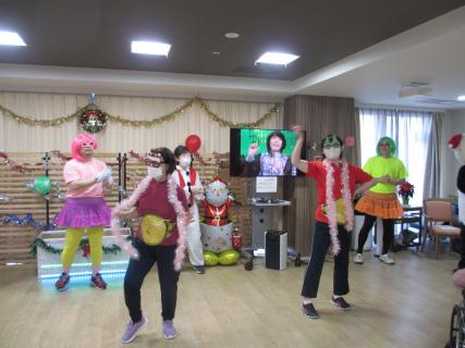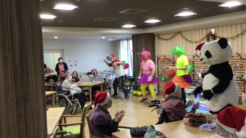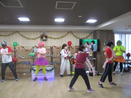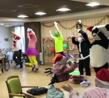 1階は、プレゼント贈呈、クリスマスソングの合唱から、ダンス×2