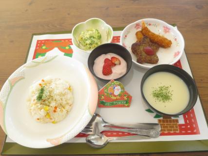 のクリスマスランチでした。配膳時蓋をとった時の、利用者様の素晴らしいリア