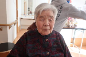 前髪にポイントを効かせたマダムヘアの出来上がり✨入居者様もご満悦のこの表情~