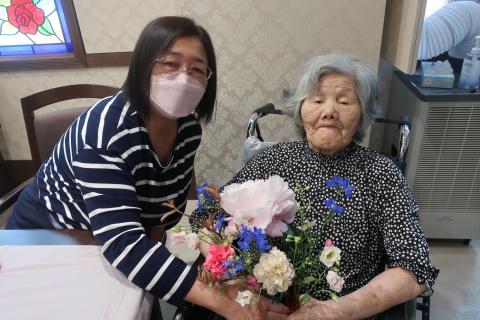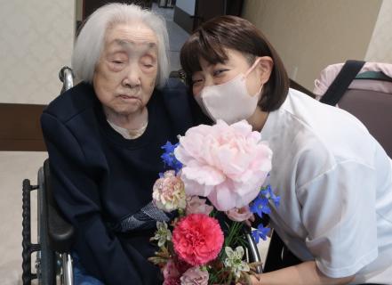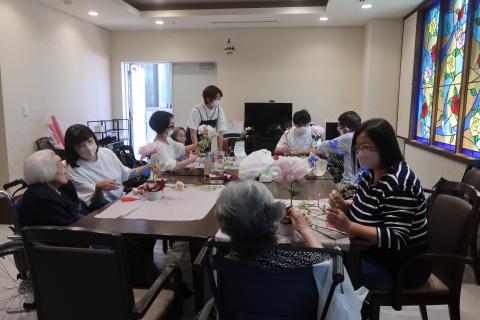今回は母の日に入居者様とそのご家族様で、フラワーアレンジメント