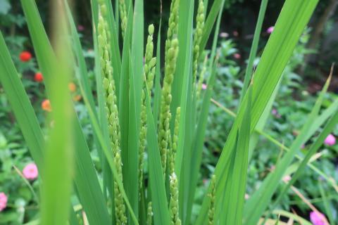 モミから育てている稲が穂をつけはじめました!