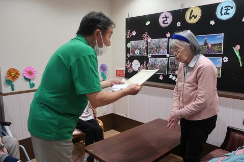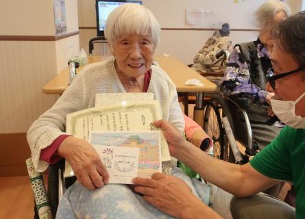 受賞の入居者様は表彰状と色鉛筆が手渡されました。