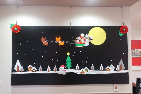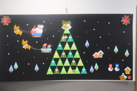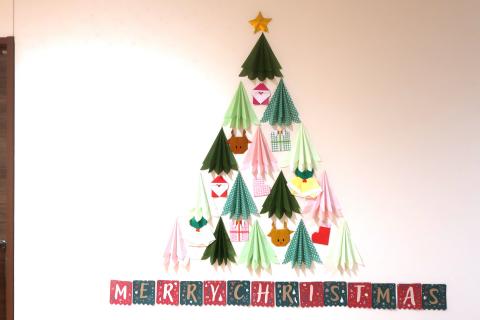 画用紙で立体的にクリスマスツリーを作ったユニットもあり、