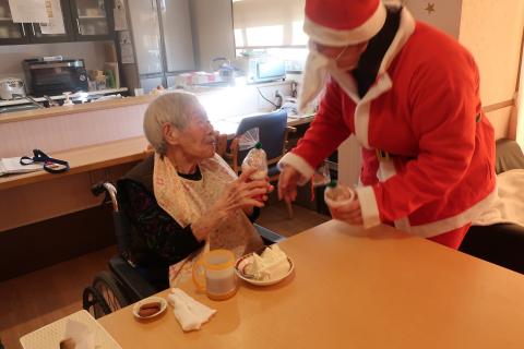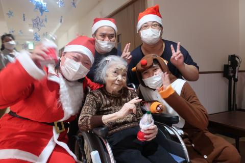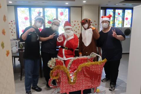 クリスマス会チームでサンタやトナカイに扮し、各ユニット周ります。