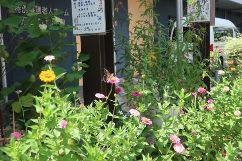 裏庭にもお花たちの所へ、ちょうちょが飛んでいます♡