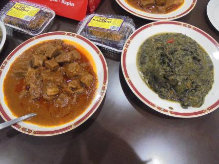 「Laing」(ライング)(右)・・・タロイモの葉を使った料理です。