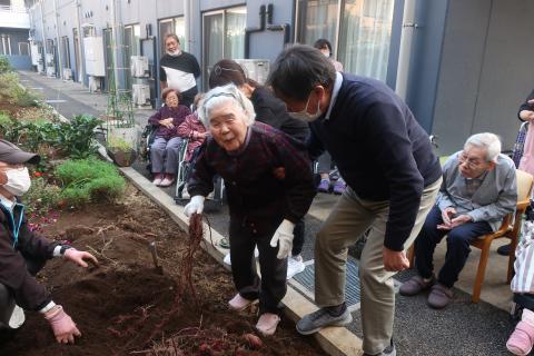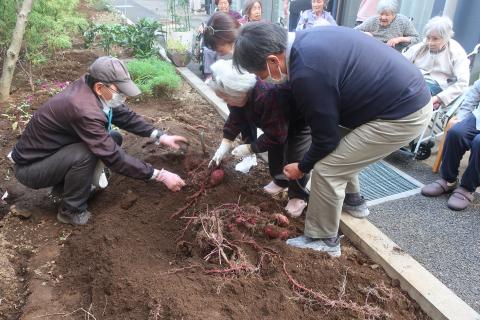 収穫したさつまいもは、後日ご入居者様のおやつにご提供する予定です。