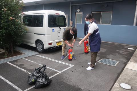 そのあと、初期消火(消火器使用)訓練を行いました。